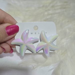 گوشواره ستاره دریایی میخی سفید هولوگرامی کد 2075