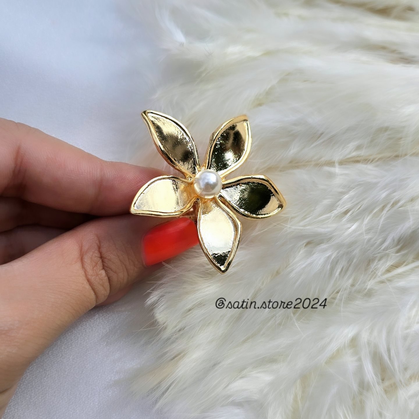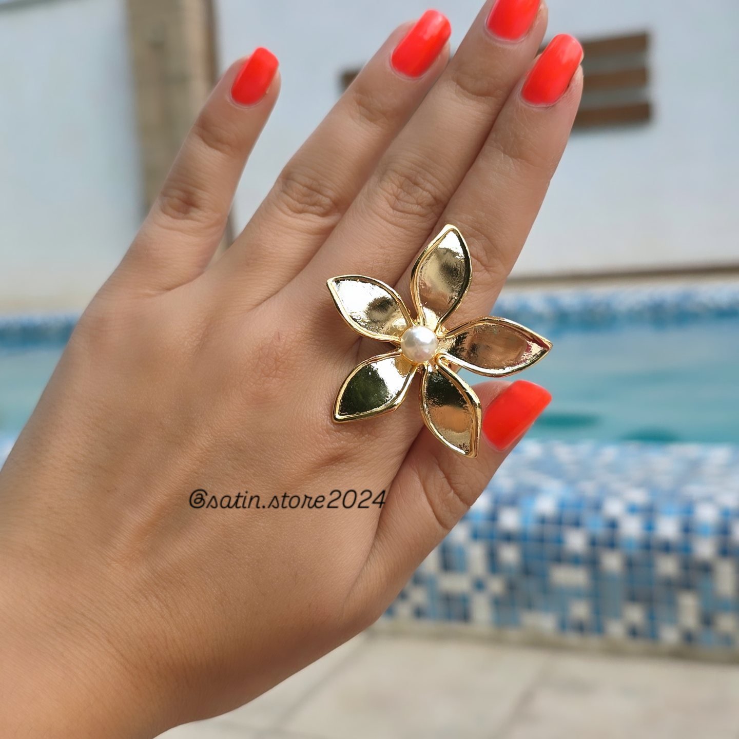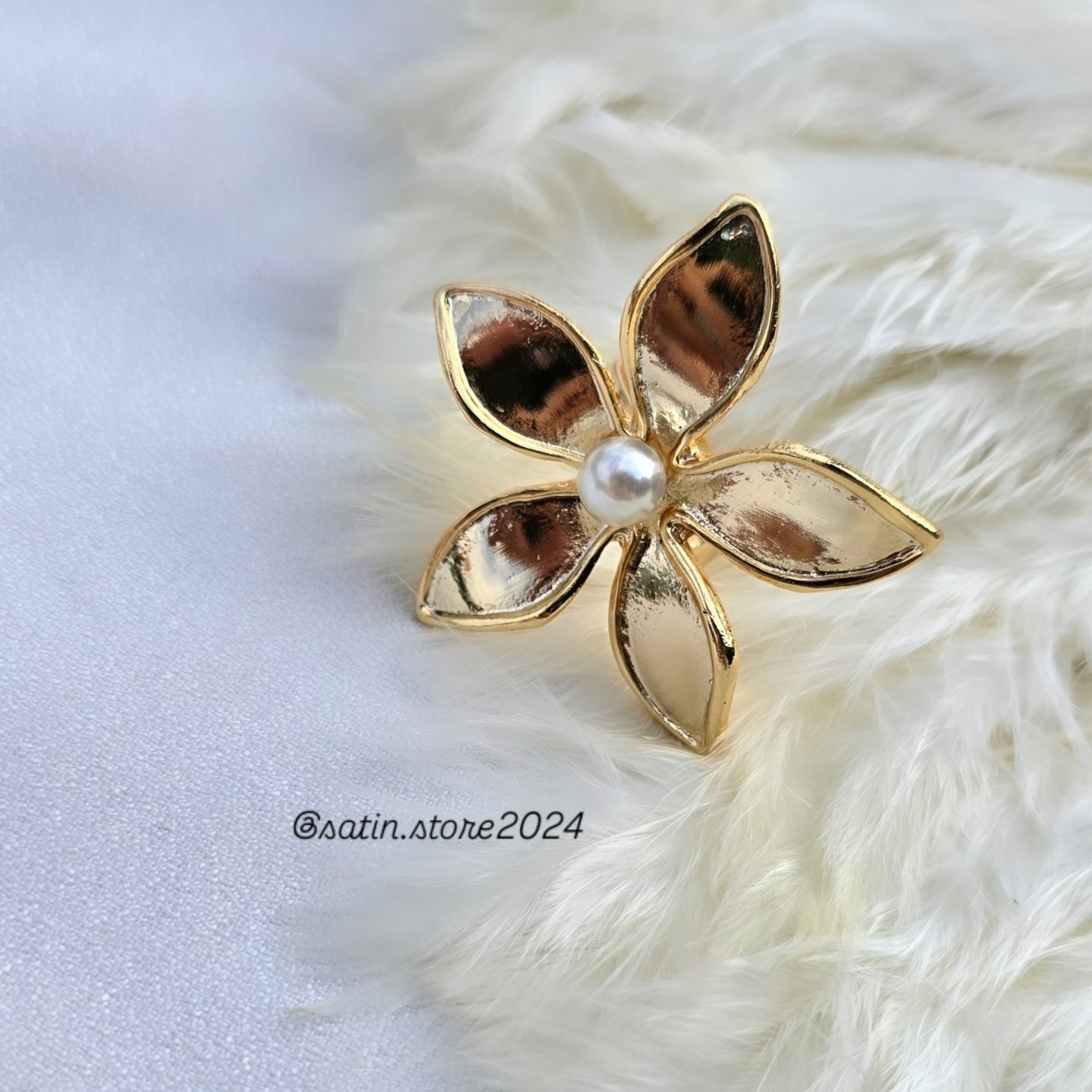 انگشتر گل مرواریدی فشن طلایی کد 4005