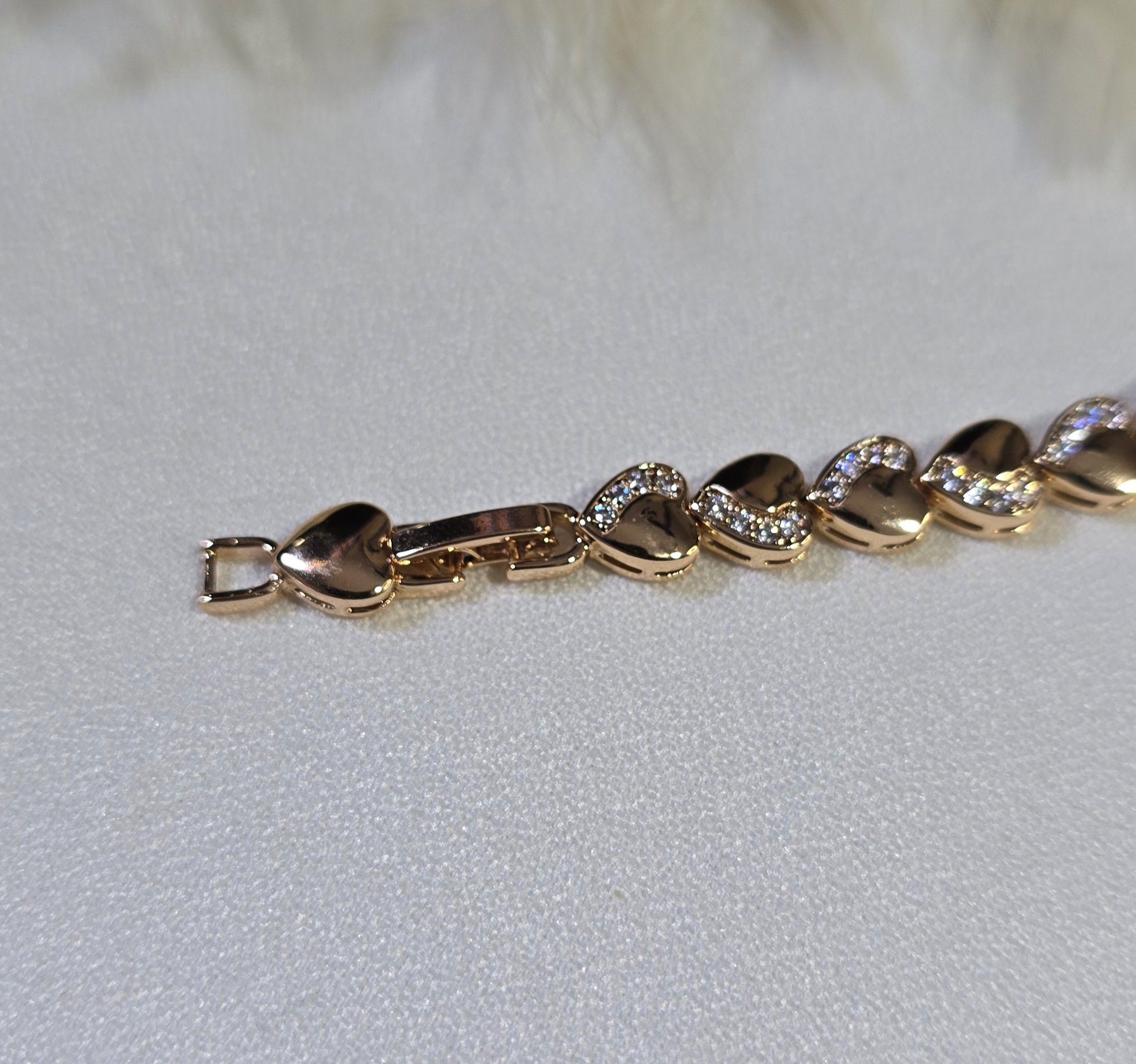 دستبند قلبی نگین کاری شده رنگ ثابت کد 3027