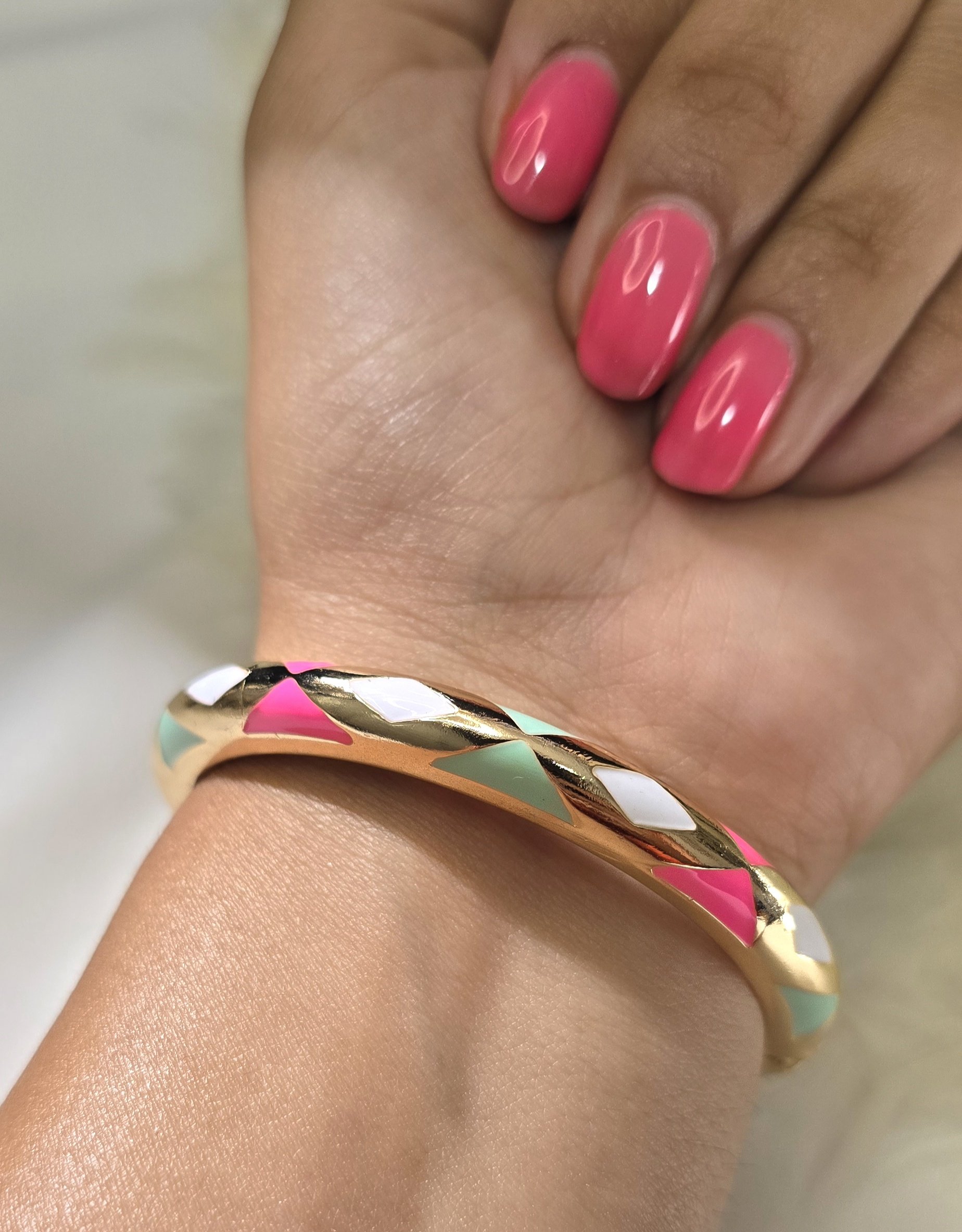 دسته: النگو, تکدست, دستبند, دستبند زنانه و دخترانه, دستبند میناکاری, زیورآلات, زیورآلات زنانه