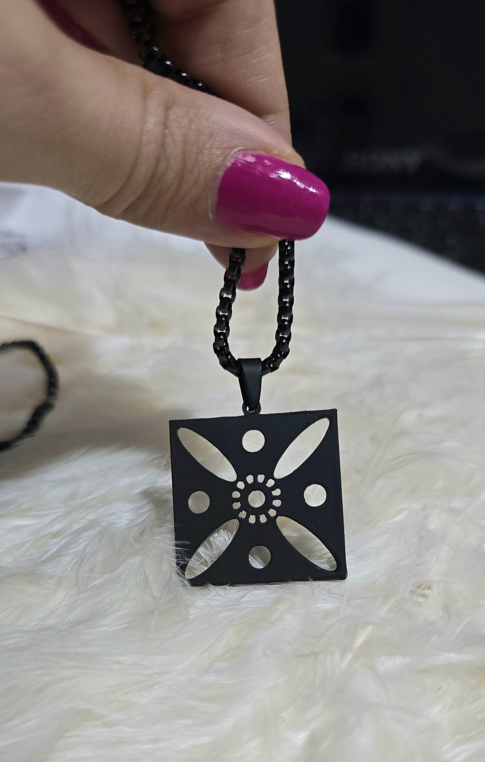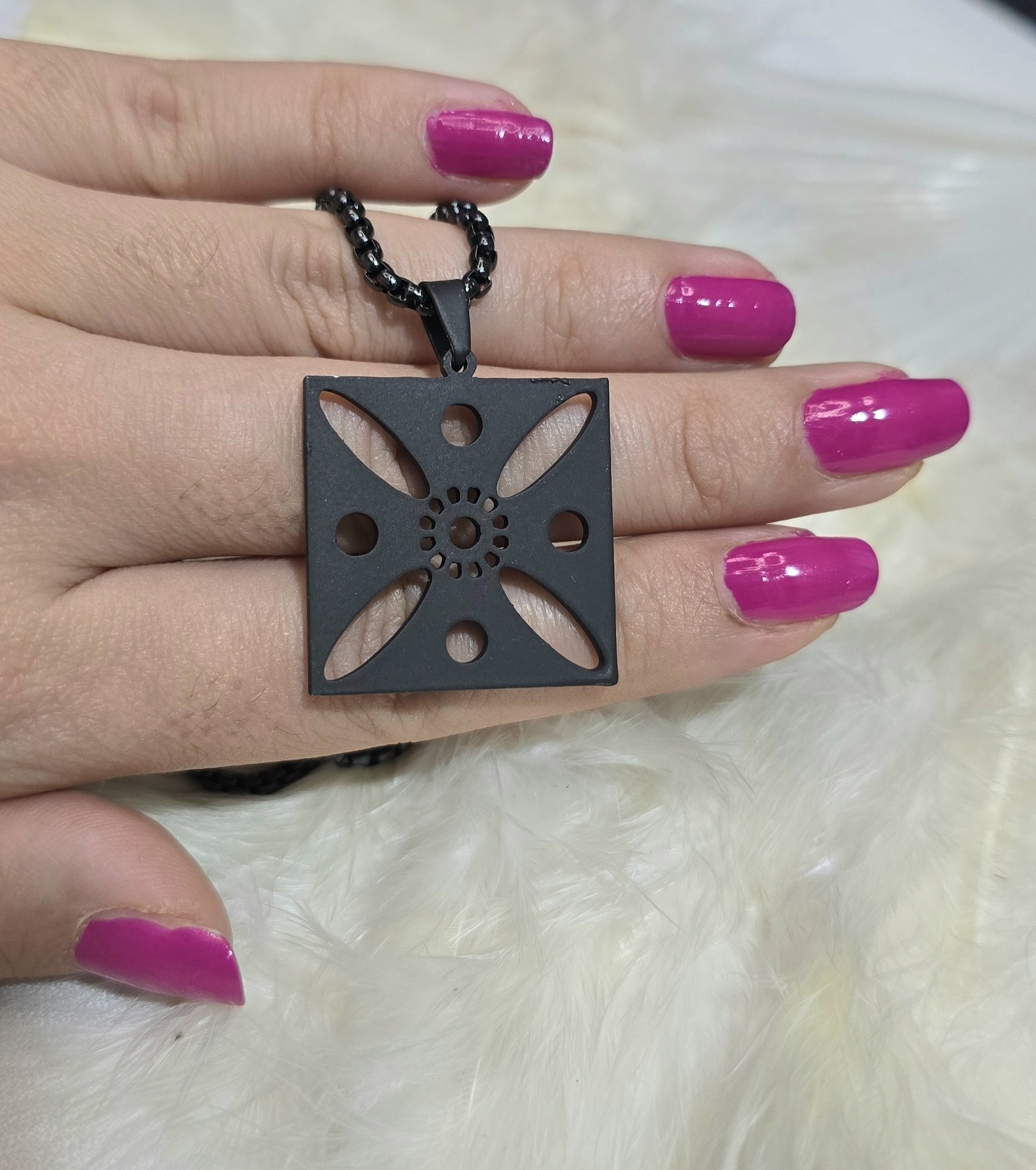گردنبند درفش کاویانی پلاک و زنجیر استیل مشکی کد 1141