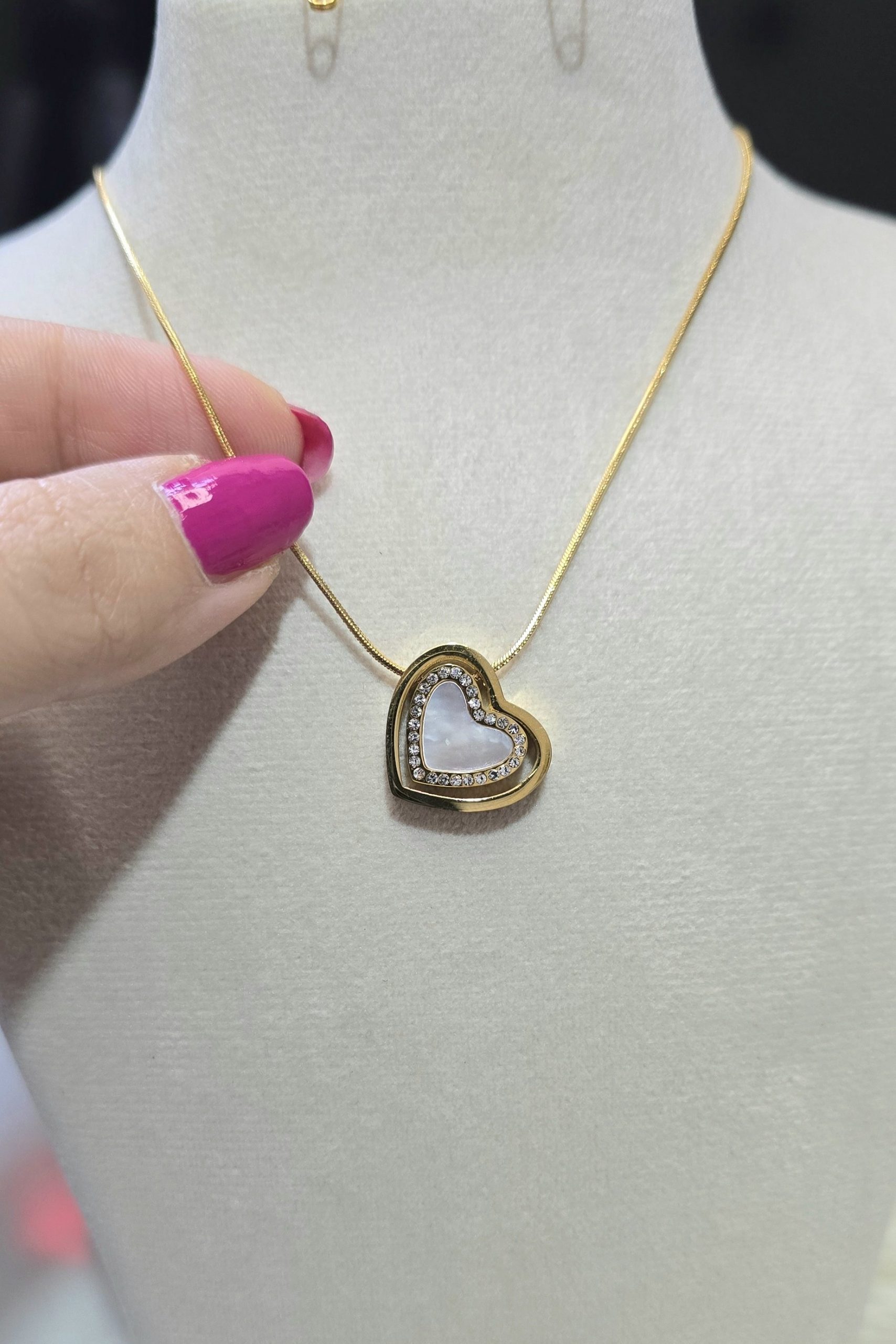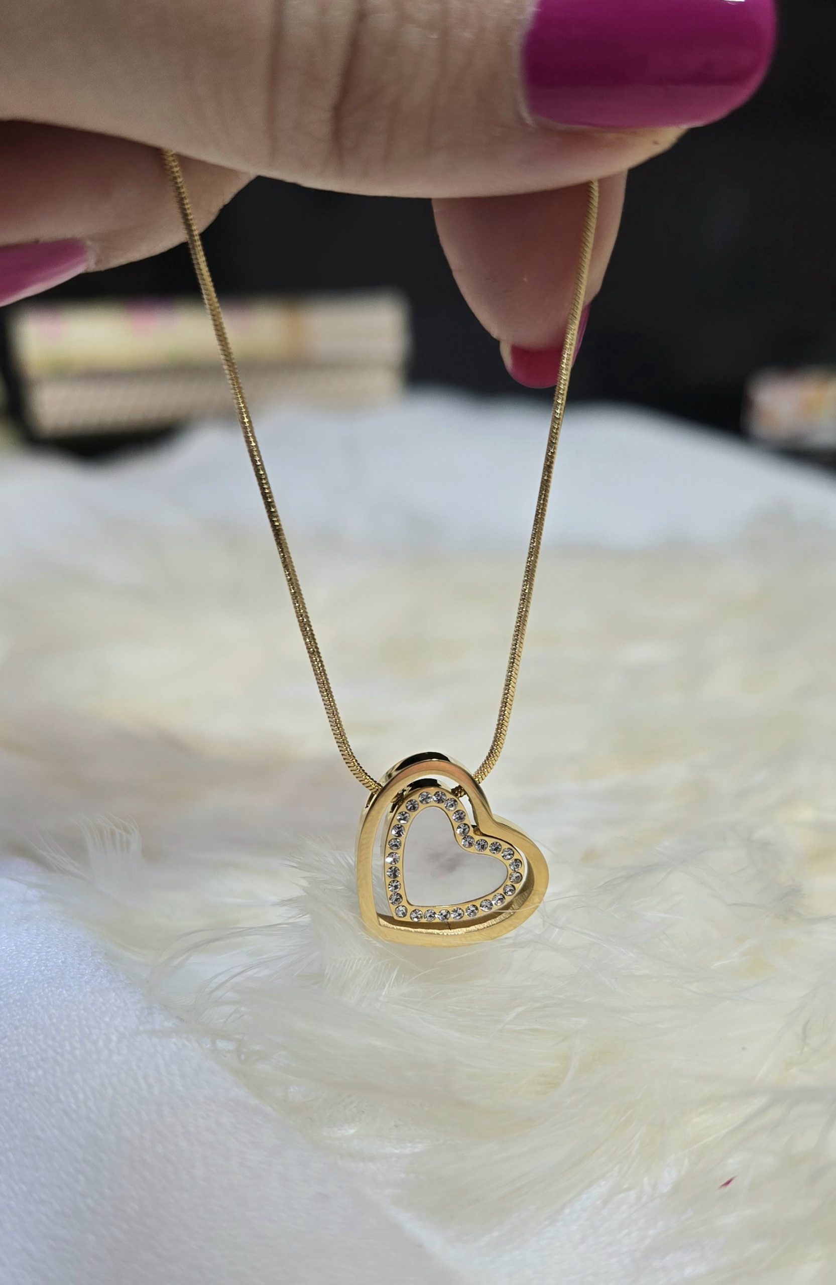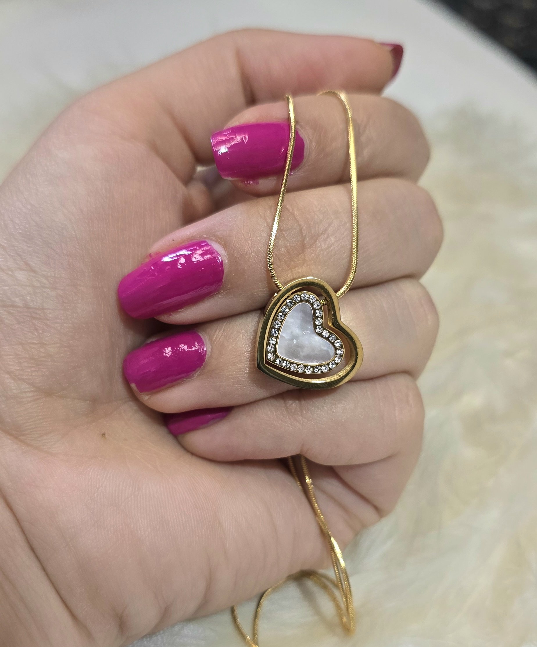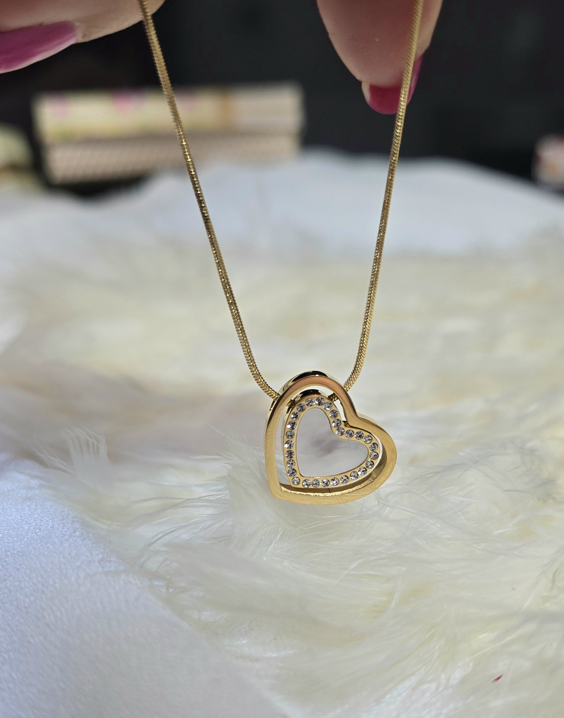 گردنبند قلبی استیل نگین کاری شده کد 1142